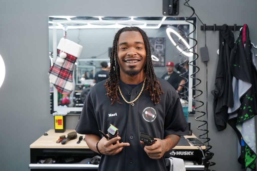 Mari, Specializes in Haircutting. His Strengths Are Line Work, Enhancements, & Natural Hair Cuts. Taper Fades Are His Bread & Butter !